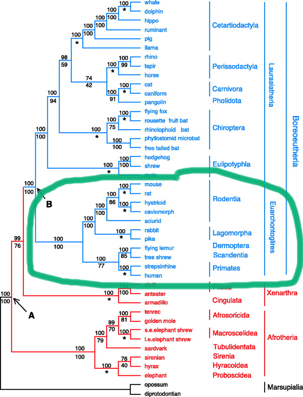The superorder Euarchontaglires is comprised of five orders: