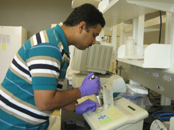 I am interested in host’s immune response to Leishmania. I am currently trying to characterize the cytokine’s effects (mainly TNFα, IFNγ and IL10) on intracellular killing of Leishmania amastigotes. It is shown that a Th1 response would enable in effectively curing the patient of Leishmaniasis. My data shows that when TNFα is given along with IFNγ to murine macrophages, there is increased killing of intracellular parasites consistent with the Th1 model. Even when IL10 (an anti-inflammatory cytokine) is given along with the other two cytokines there is increased killing of the parasite showing that TNFα can effectively reverse the anti inflammatory effect of IL10. I am also trying to characterize another phenomenon called intracellular opsonization. Here we can see the antibodies attach to the parasite even after the parasite is completely internalized. This is perhaps one of the mechanisms used by the parasite to gain increased virulence.  This is unique to macrophage parasites because the ligations of the Fcγ receptors will lead to the production of IL10 and Th2 response.  This in turn helps to exacerbating the disease. The actual mechanism as to how this happens is still under investigation.