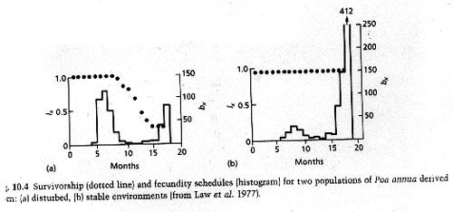 5. Fecundity curves can also vary among populations. Example: Poa annua (a grass)