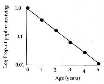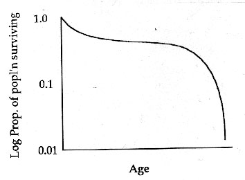 2. High juvenile mortality, but once reach a certain point, chances of survivorship good (Type III).
