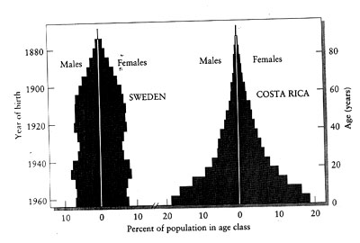 E. Different populations have different distributions of ages, and the relative frequency of different ages in a population is known as age structure.