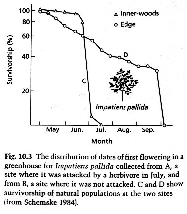 4. Survivorship curves can vary among populations of the same species. Ex. Impatiens pallida.