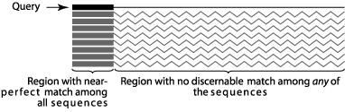 15. Imagine that you are performing an analysis of some DNA sequences that you obtained by "shotgun" cloning of genomic DNA. You find a sequence that contains a long open reading frame, and use BLASTN to examine GenBank for similar sequences. BLASTN returns a peculiar group of sequences that have a short region (ca. 30 NT) of perfect match, but the rest of the sequences seem completely unrelated (see figure below). How can you explain this observation? What could you do to improve your chances of identifying sequences that are homologous to the sequence you have obtained?